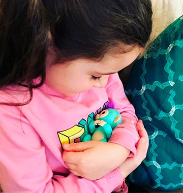 Małpki muszą odpocząć. Ułóż ją w dłoniach, ukołysz niczym niemowlę, a małpka uśnie. Obserwuj, jak zasypiają i wydawają różne senne dźwięki!